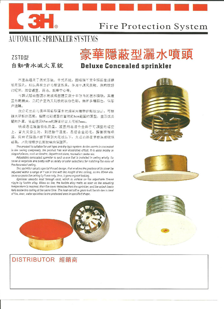 本产品适用于湿式系统、干式系统,因喷头可完全隐蔽在顶棚或吊顶内,所以具有良好的装饰效果,多用于讲究美观、装饰较好的场所,如会议室商场娱乐中心等。