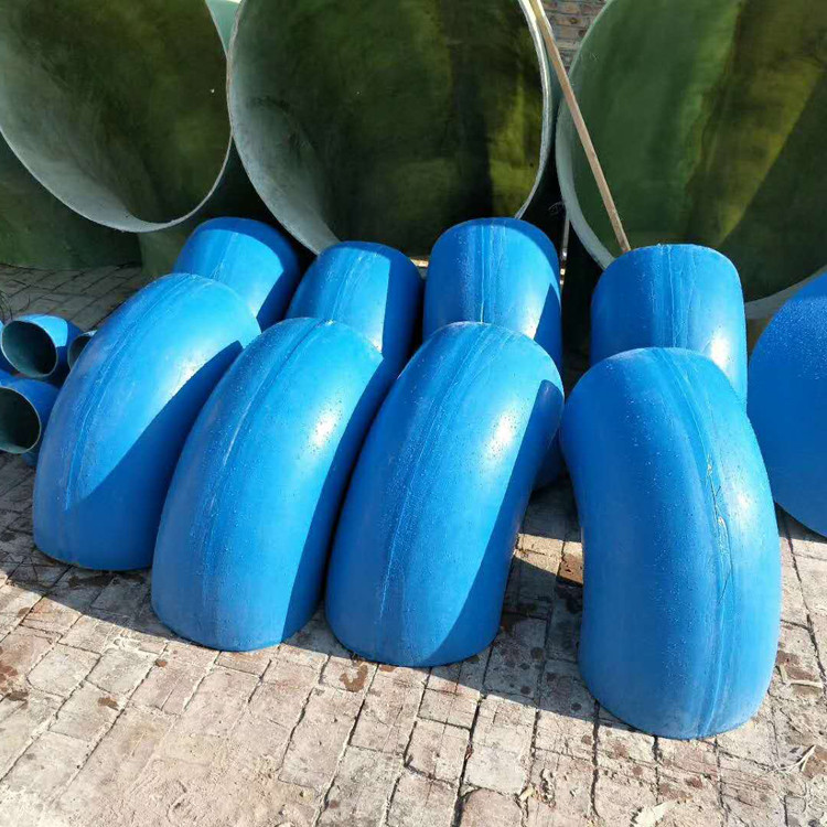2、加工特点:目前DN800以下标准的玻璃钢弯头可以在模具上整体成型,小于DN600以下标准的玻璃钢弯头转弯半径为管径的1.5倍,其它玻璃钢弯头转弯半径等于相应管径。固肽玻璃钢也可以根据客户要求生产各种规格各种形式的玻璃钢弯头。
