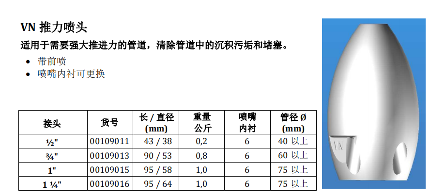 | 型号 | VN推力喷头 |