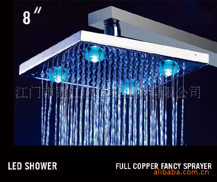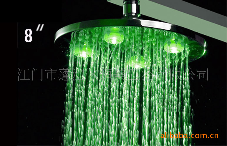 8)当水流出时,淋浴头内置LED灯会发光;