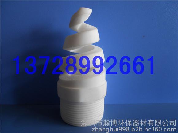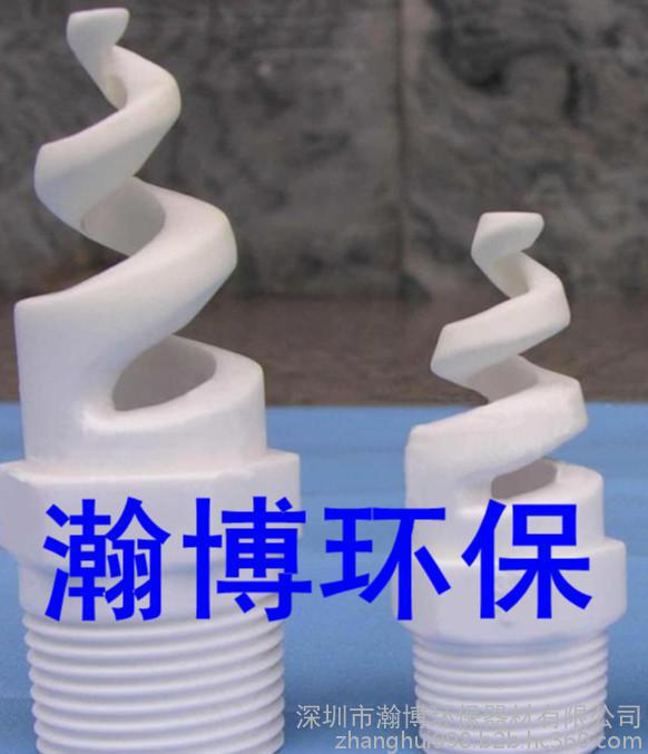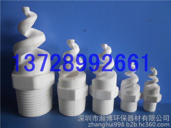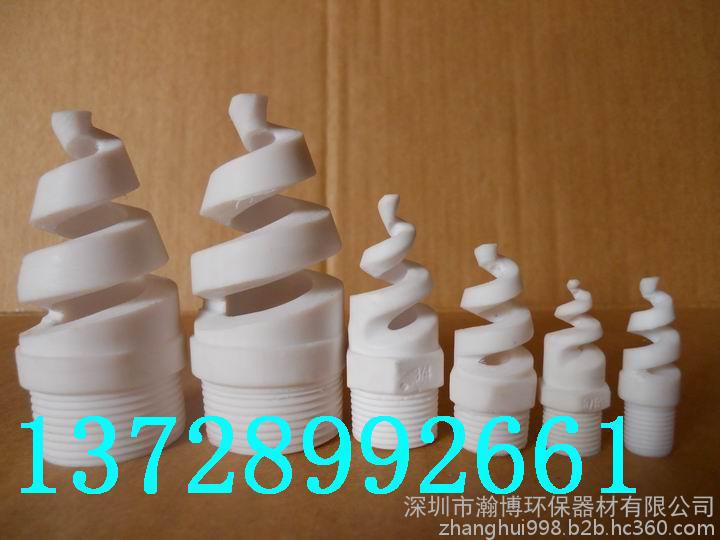 表中以外规格也可按用户需要进行设计制作,产品外观洁白、无杂色、表面光滑。 螺旋喷头的工作原理是:液体(或料浆)通过与连续变小的螺旋面相切和碰撞后,变成微小的液珠喷出而形成雾状。喷头腔体内从进口至出口的流线型设计使得阻力系数降至**低,因而螺旋喷头适用于各种岗位。例如:化工、环保、电力、纺织等众多工业领域,特别是烟气脱硫除尘行业应用更为广泛。其耐磨性、耐腐性、成雾性、防堵性已被该行业众多用户所接受