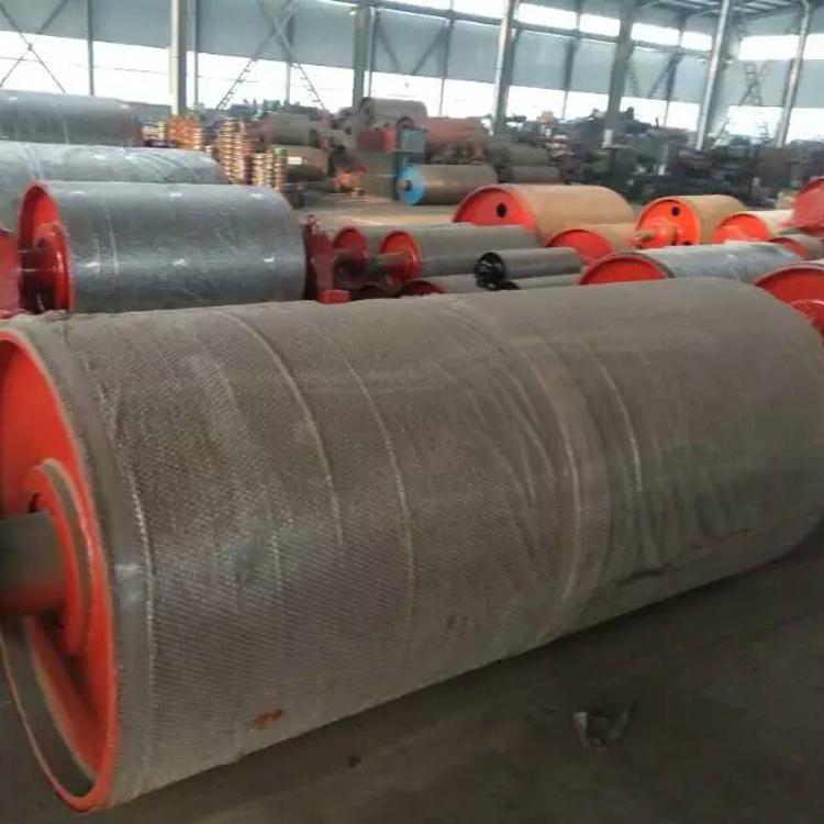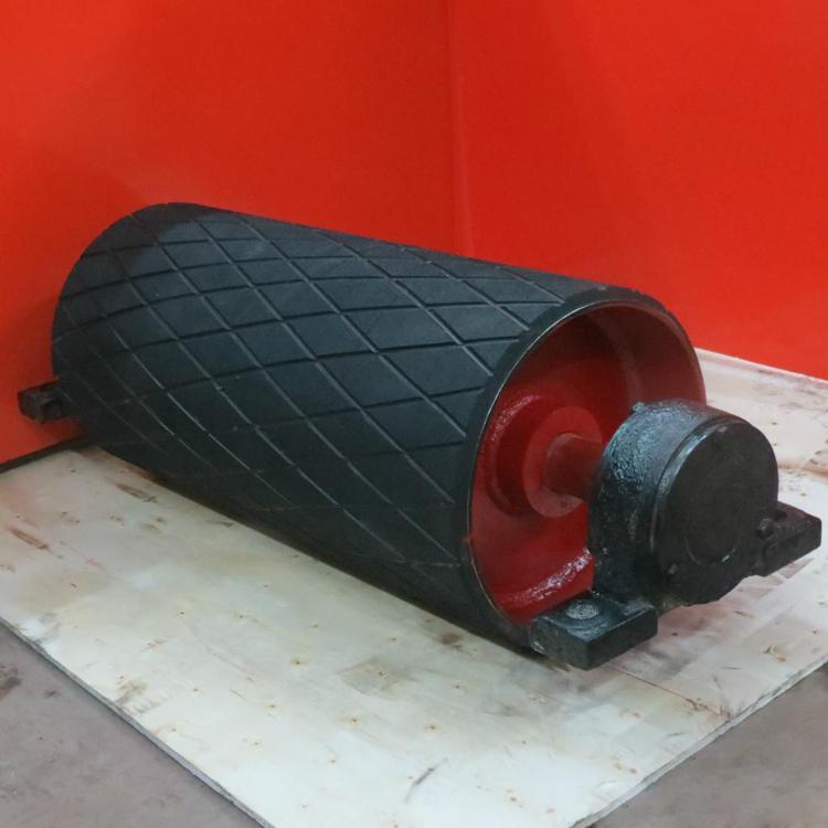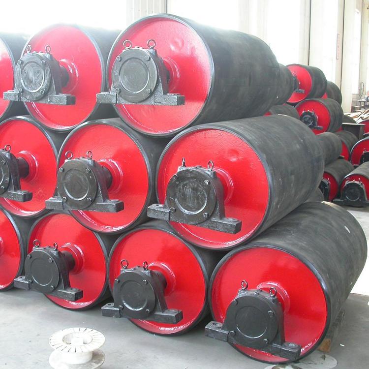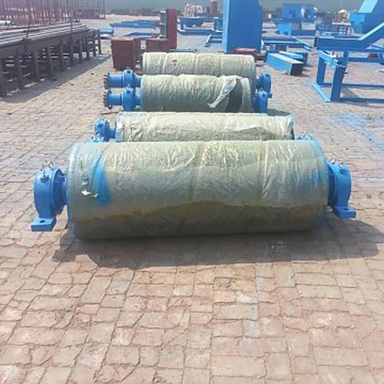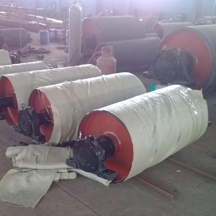传动滚筒是输送机传递动力的部件。传动滚筒表面有裸露光钢面,人字形和菱形花纹橡胶覆面。小功率、小带宽及环境干