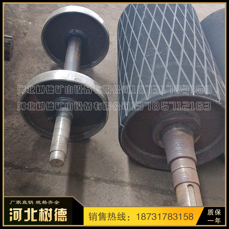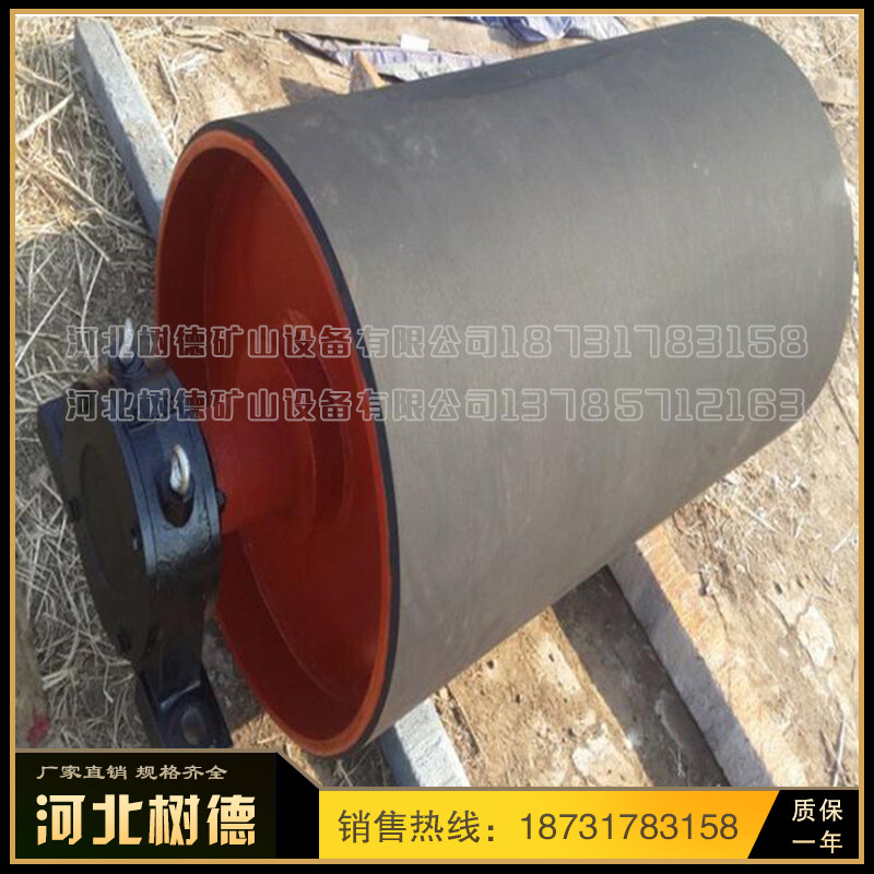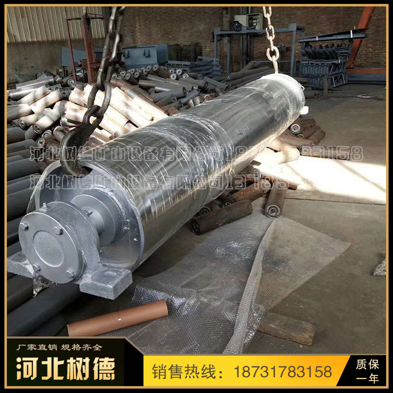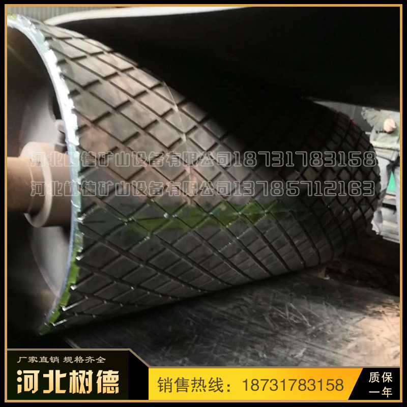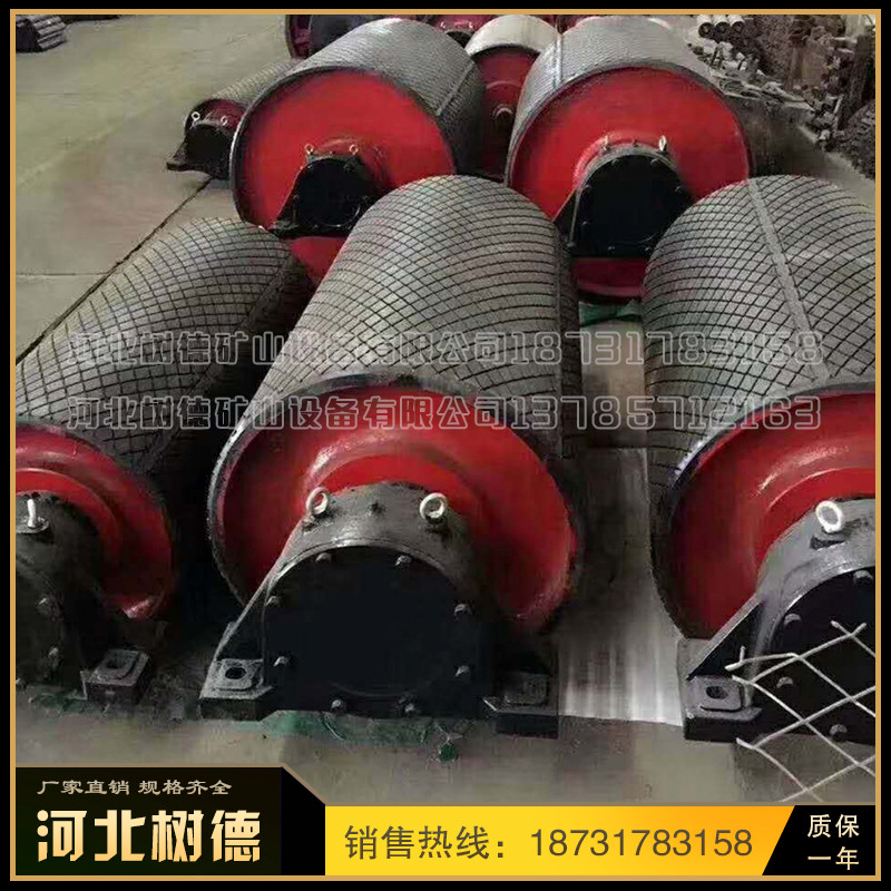 1 、滚筒材质根据用户需要选用碳钢镀锌、镀铬、镀镍、铸胶(包胶)或不锈钢、钢制塑钢等不同材质。 2 、碳钢机身表面处理可根据用户要求选择喷涂、喷塑、烤漆等,不锈钢机身可选择镜面抛光、亚光、喷沙、拉丝等处理。 3、有速度调节要求的用户可选择变频调速或采用无级变速的减速电机。 选型参考: 1 、应首要根据载重量确定选用不同材质和型号的滚筒; 2 、食品行业应优先选择全不锈钢机身和不锈钢滚筒; 3 、一般输送机滚筒顶面高度略低于机身侧面高度,有特殊要求的用户可考虑机身侧面高度高于滚筒顶面高度或高度相同,根据需要可设置侧面挡板、挡边、护栏。 4、 用户在询价和选型时,请尽量提供详细的包括物料名称、料性、包装尺寸、机器材质、大致尺寸、速度和输送量等要求。 传动滚筒是输送机传递动力的部件。传动滚筒表面有裸露光钢面,人字形和菱形花纹橡胶覆面。小功率、小带宽及环境干燥时可采用裸露光钢面。人字形花纹胶面摩擦系数大,防滑性和排水性好,但有方向性。菱形胶面用于双向运行的输送机。 传动滚筒 (transmission drum) 传动滚筒是带式输送机传递动力的主要部件,其驱动带式输送机的方式有单滚筒、双滚筒及多滚筒之分。单滚筒多用于功率不太大的输送机上,如煤矿地面运输及选煤厂等处。井下带式输送机一般均采用双滚筒,以使输送机结构紧凑。