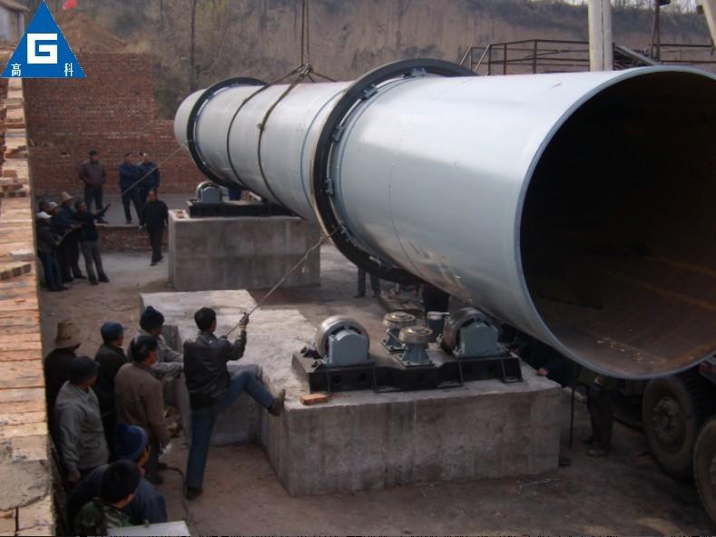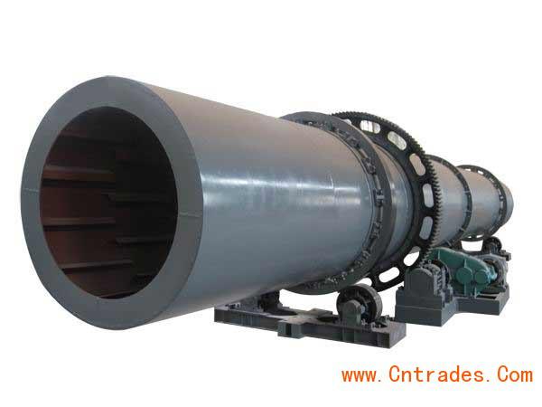 滚筒烘干机主要烘干机主体(包括回转体、扬料板,传动装置,支撑装置及密封圈等部件)和引风除尘装置组成。干燥机主体是一个与水平方向略成倾斜的圆筒,物料从较高的一端加入,高温热烟气与物料并流进入筒体,随着筒体的转动,物料由于重力的作用运行到较低一端。在圆筒内壁上装有抄板,把物料抄起又洒下,使物料与气流的接触表面增大,以提高干燥速率并促进物料前行,干燥后的产品从底端下部收集。