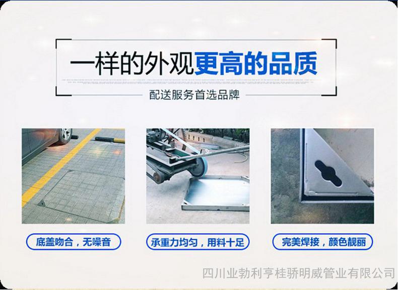 下沉式窨井盖: 是用于工业与民用建筑区内部的室外窨井.可以满足**小区铺设路碴、大理石花岗岩,所有产品都可开启板盖板,可以用于给排水井、通风井、电缆井、仪表井等,是由井框与井盖组成。同时它的强度和韧性远高于铸铁,也可用于码头,机场等大跨度和重载荷的环境;