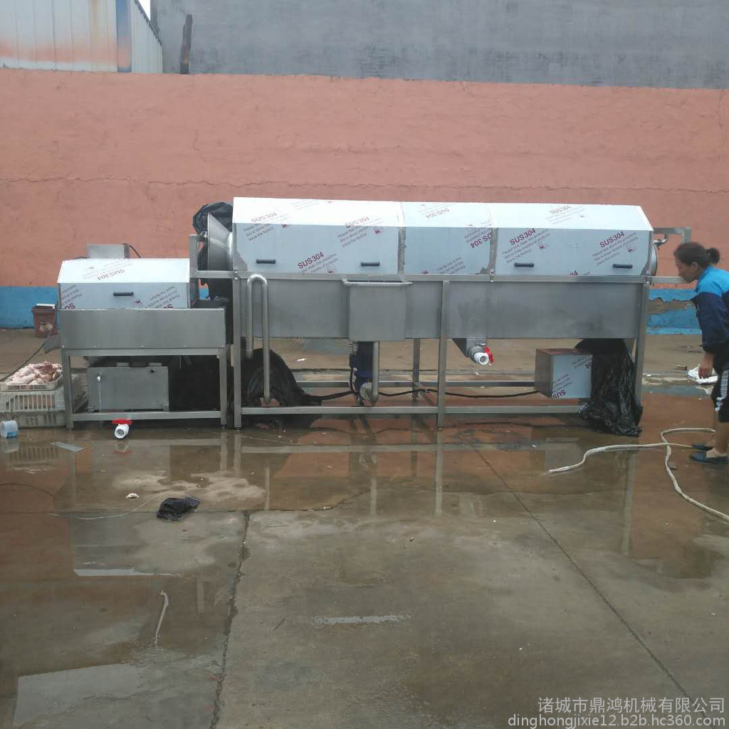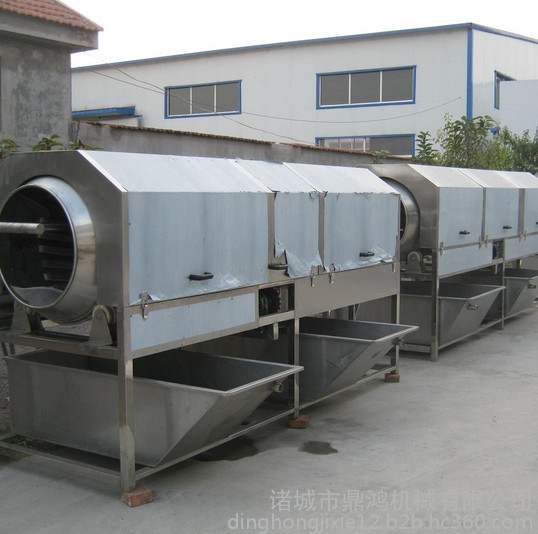 滚筒清洗机采用滚筒式清洗,使产品与水分离,靠循环水对产品进行清洗,防止二次污染,滚筒采用直接冲孔,空的直径为5mm,也可以根据要求确定空的直径,滚筒传动采用齿轮传动,运行平稳,大大降低故障率,电机保质期为一年质保,终身售后维修。循环水泵采用大流量循环水泵,水量大,稳定性高。喷淋管道采用无缝钢管,坚固耐用。本机适用于食品加工企业,适用于含泥或其它杂物比较多的大个物料。本设备外箱呈六边形,侧边装有有机玻璃,供观察。滚筒内部装有毛刷板,上部有两组喷淋水管,通过滚筒带动毛刷板旋转,和上部喷淋水的冲洗达到清洗效果。