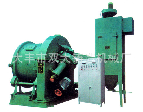 轮将弹丸抛向滚筒内不断翻转的铸、锻件,来清除其表面的残余型砂或氧化铁皮,清理均匀,适宜中、小铸、锻件的清理。本机带有集尘装置,分离效果好,自动控制停车,操作维修方便。