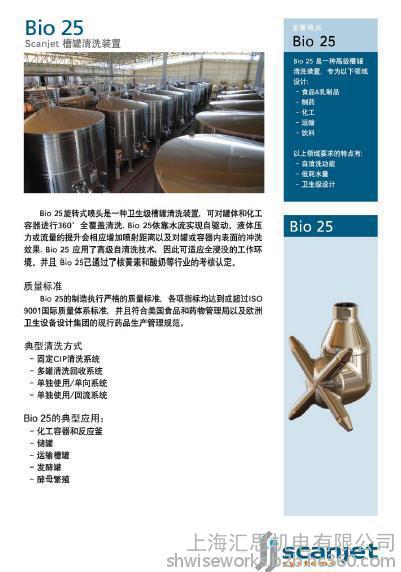 本公司供应BIO 25洗罐器,BIO 25 洗罐器是一种卫生级槽罐清洗设备,可对各类罐子容器进行360度全覆盖清洗,水流自驱动,并带有**自清洗技术。适应全浸没的工作环境,符合美国食品和药物管理局以及欧洲卫生设备生产管理规范,满足ISO 9001国际质量体系标准。欢迎咨询洽谈。