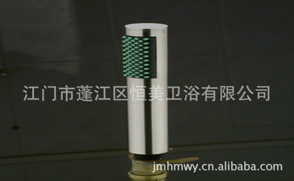 6、一片式欧美时尚圆柱型喷头,在水质不好时,只需轻轻一弹喷头**可以清洗出沙子;
