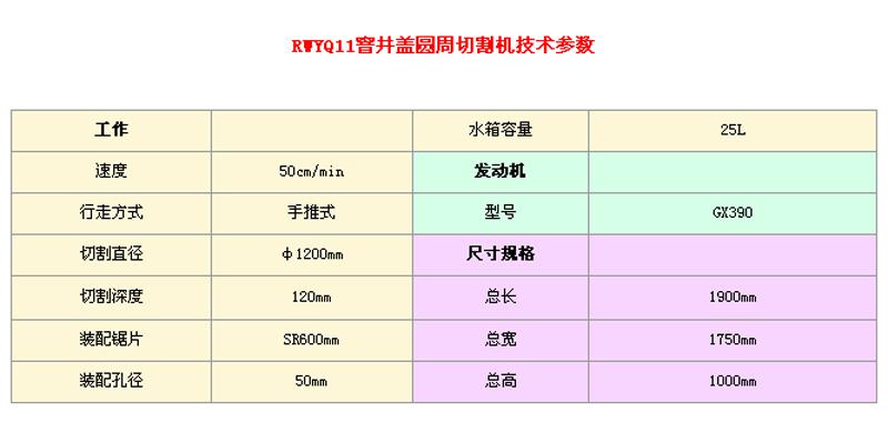 | RWYQ11窨井盖圆周切割机技术参数 |