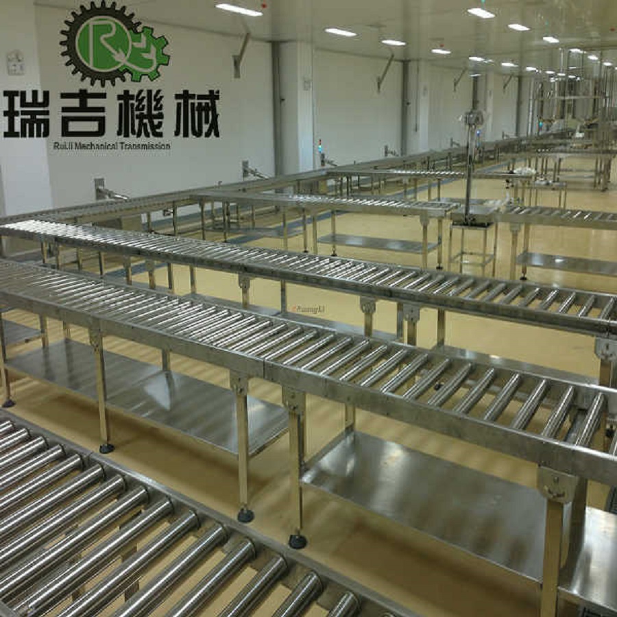分合流滚筒输送机用途:适用于室内环境。用于箱式及底面平整的单元货物的输送。与单链机配合,可满足输送物的分合流。特点:经济实用,性价比高。模组化设计,易装配。支腿高度可调节,适用范围大。表面静电喷涂,外形美观。