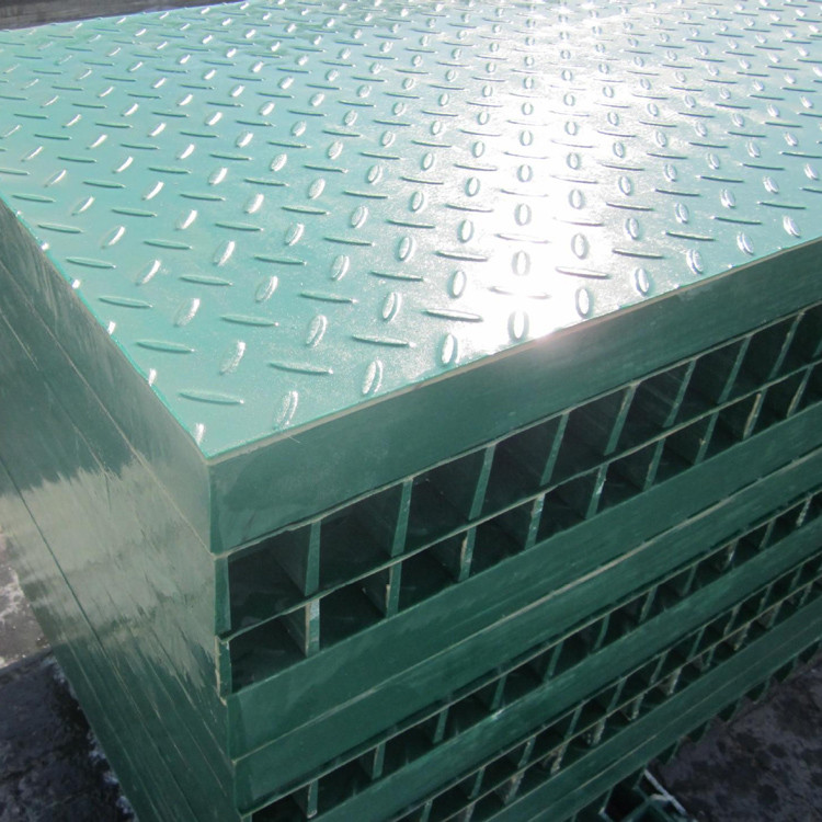 玻璃钢格栅盖板是一种用玻璃纤维作增强材料,不饱和聚酯树脂为基体,经过特殊的加工复合而成的一种带有许多空格的板状材料,它可以作为结构材料,用作有腐蚀环境的地板、地沟盖板、平台、舰艇甲板、楼梯、栈道等。