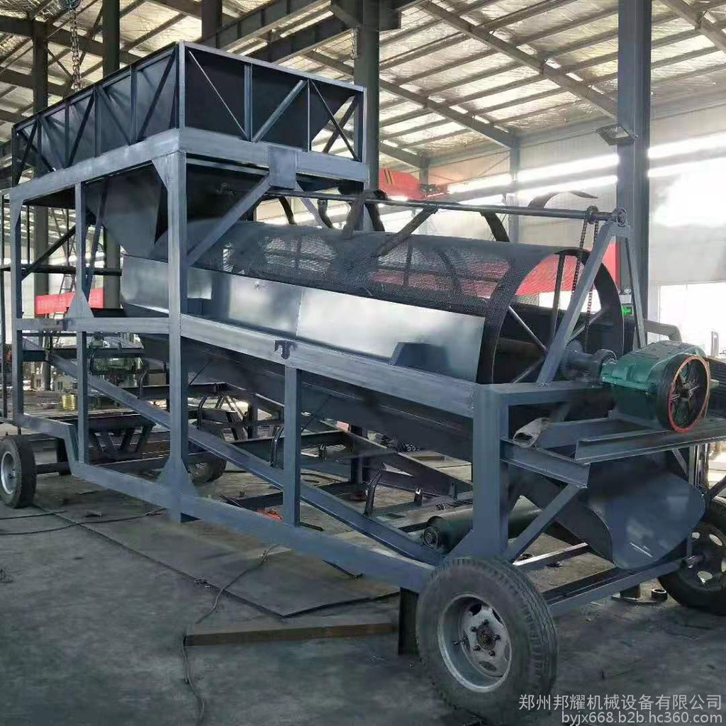 筛沙机又名旱地筛沙机,砂石分离机,是适用于河道,水库,煤场的沙石分离设备。由船体,架子,减速机,传送带,转筛,发动机或电机,组成。本机型结构简单,经济适用,易操作。分为滚筒式筛沙机、水洗滚筒式筛沙机、振动筛式筛沙机等。