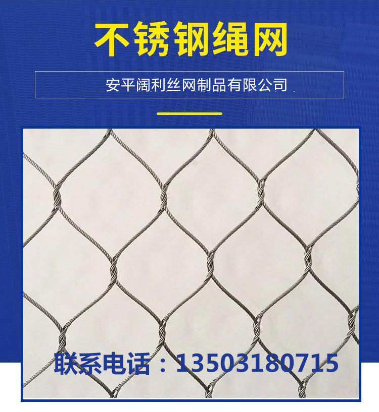 不锈钢绳网是由304、304L、316、316L工艺分为手工编织,封闭口型,开口扣型,不锈钢绳网