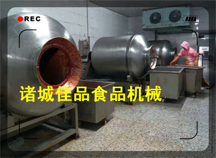 佳品机械滚揉机整机采用不锈钢制作,结构合理,坚固耐用,运行平稳,真空及过滤系统安全性能高,效率高,便于操作。主要用于牛羊肉、猪肉、鸡胸肉等滚揉、腌制,是生产加工各种西式香肠、火腿、培根、烤肉以及禽类、中式酱卤类、休闲类肉食品等。佳品滚揉机采用真空腌制,大大缩短了腌制时间,而且使肉块充分吸收盐水,使蛋白质溶解。这样不仅使肉的结构松驰,达到嫩化效果,而且改善了肉的外观和提高了出品率。