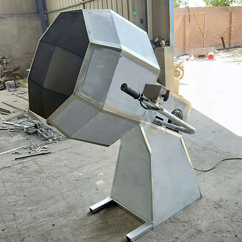 八角调味机圆球设计为八角造型,避免了圆球调味机原料不滚动的弊端,充分搅拌原料,并且调味机筒内没有死角、卫生清理更加方便,可以扳倒出料,使用方便。球体为不锈钢材料。