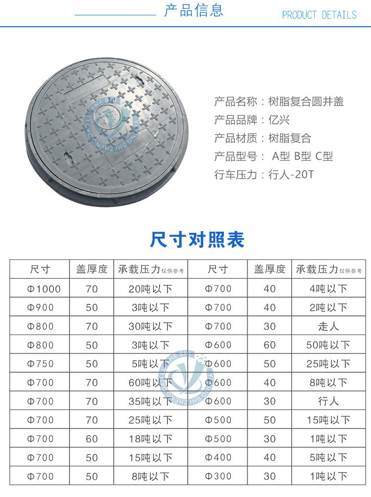 亿兴重型福建福州**树脂复合圆形井盖700×70厚重型树脂井盖窨井盖 树脂复合井盖
