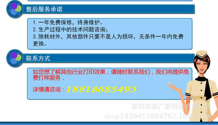 深圳市深广联科技有限公司主营UV平板喷绘机,UV平板打印机,UV卷材喷绘打印机,UV平板立体印刷导带机,平板打印机,同步双面喷绘机等喷印设备,长期供应配件及耗材厂家,