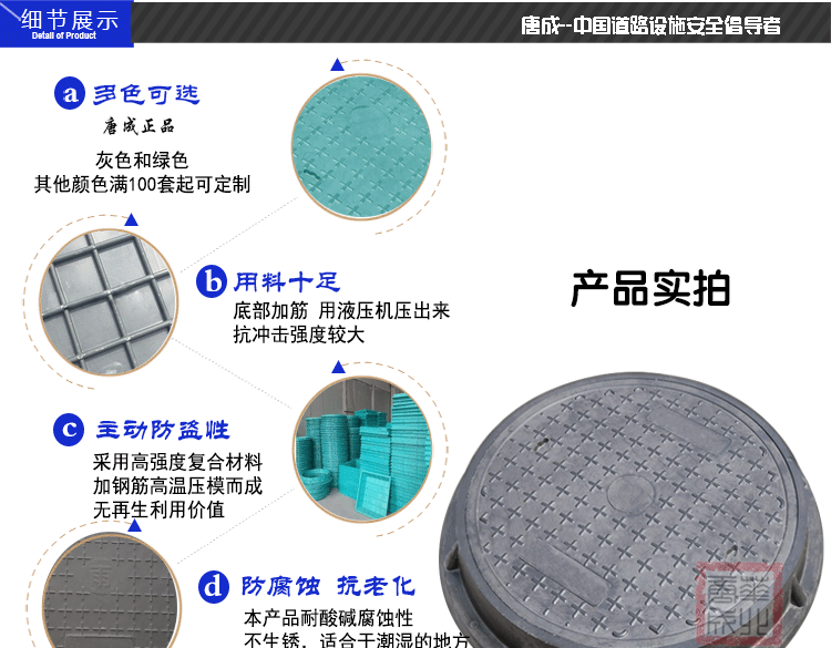 树脂圆形井盖轻型600*30窨井盖盖板雨水井盖消防井盖通信井盖电力