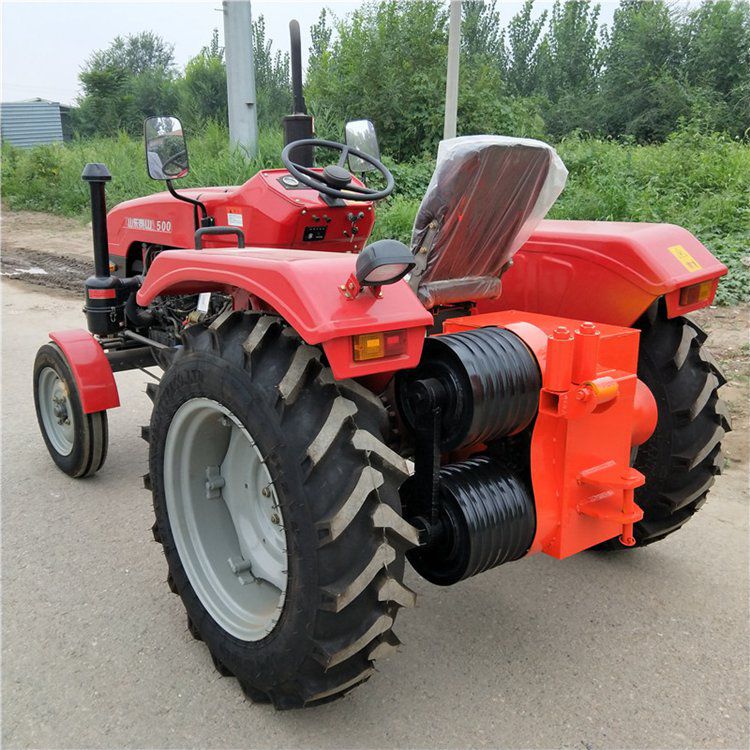 拖拉机机动绞磨由拖拉机改制,用于牵引收放线或起吊重物,拖拉机机动绞磨自备行走部分可以配车箱以方便运输。两侧配有三只卷筒,一边是“V”型可以牵引普通钢丝绳或锦纶绳,另一边是带槽的大直径卷筒可以牵引无扭钢丝绳。