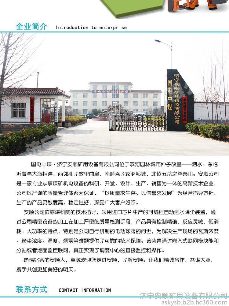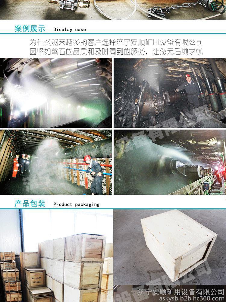 用途:主要用于运煤巷、主巷道和井底停车场等场所。自动洒水降尘,降低巷道内的煤尘、灰尘、瓦斯等浓度的配件。
