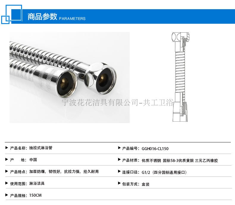 本公司供应GG共工卫浴 抽拉式花洒软管 淋浴软管 不锈钢双扣防爆 淋浴喷头,质量保证,欢迎咨询洽谈。