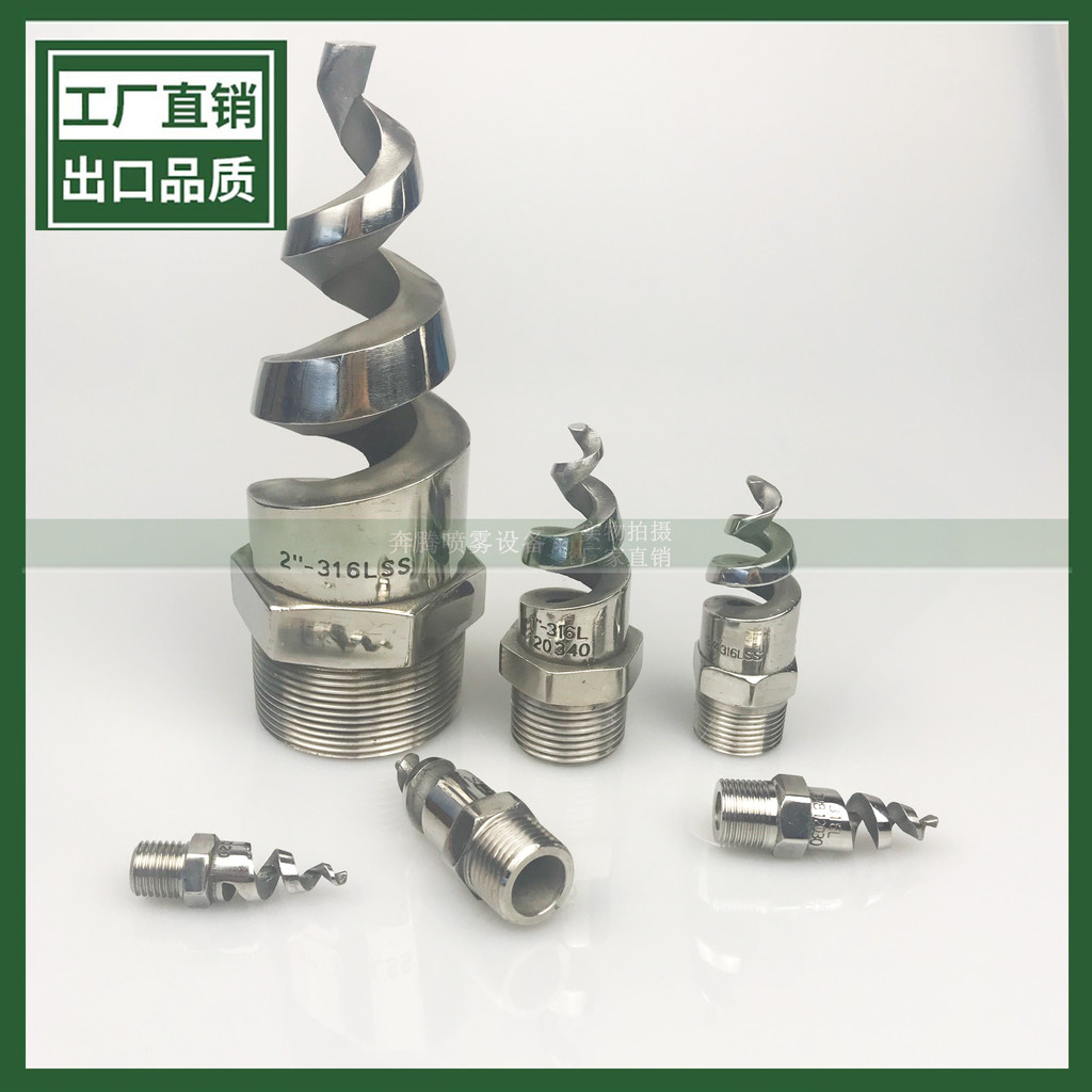 1. 螺旋喷嘴常用于脱硫、脱硝除尘行业,比如在脱硫塔应用中,喷洒大量石灰水与废气中和。石灰水中常含有较大颗粒杂质,螺旋喷嘴的直通设计完全可以消除阻碍现象,并且螺旋的外观能使水雾覆盖面积大,使水雾与空气的接触面也更为扩大。