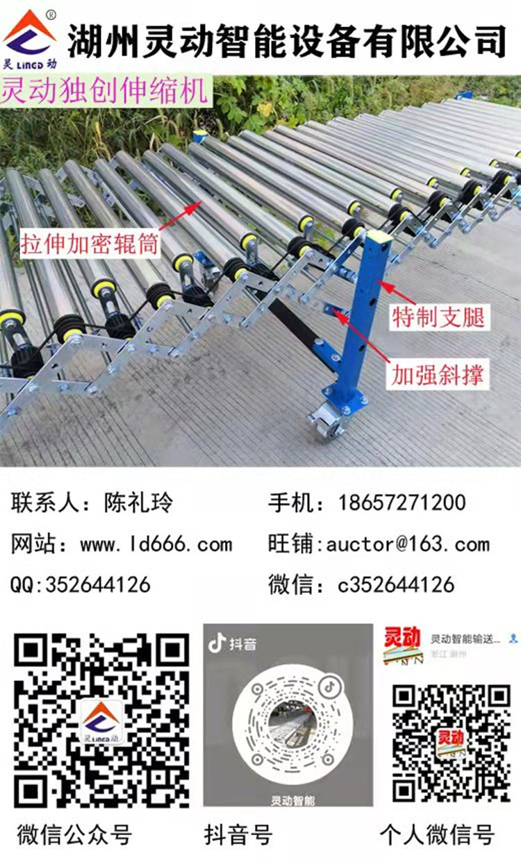 3、 弹出式辊筒,能在拉伸后辊筒间距很小,兼容输送大小件物品;
