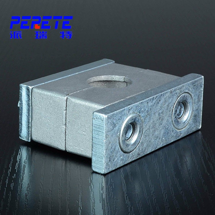 装地导轨上 ,导轨可焊在基础上,或用螺钉固定,随后将导轨螺母推入轨内,并转 90 度,将下半个管夹身嵌入螺母,放上需固定的管子,再放上上半个管管夹身和盖板,用螺钉固定。