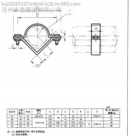 河北齐鑫供应M1-4管夹 HG/T21629化工管道用管夹 扁钢管夹按图定制