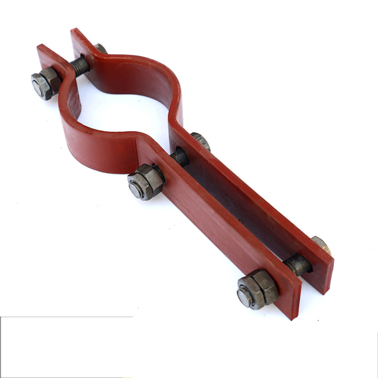 装配在焊接板上 装配前,为更好地确定夹的方向,建议先在固定处做好标记,后焊上焊接,嵌上管夹身的下半部分,放上需固定的管子。再放上另一半管夹身和盖板,用螺钉拧紧。 切忌直接焊接已装好管夹的底板。