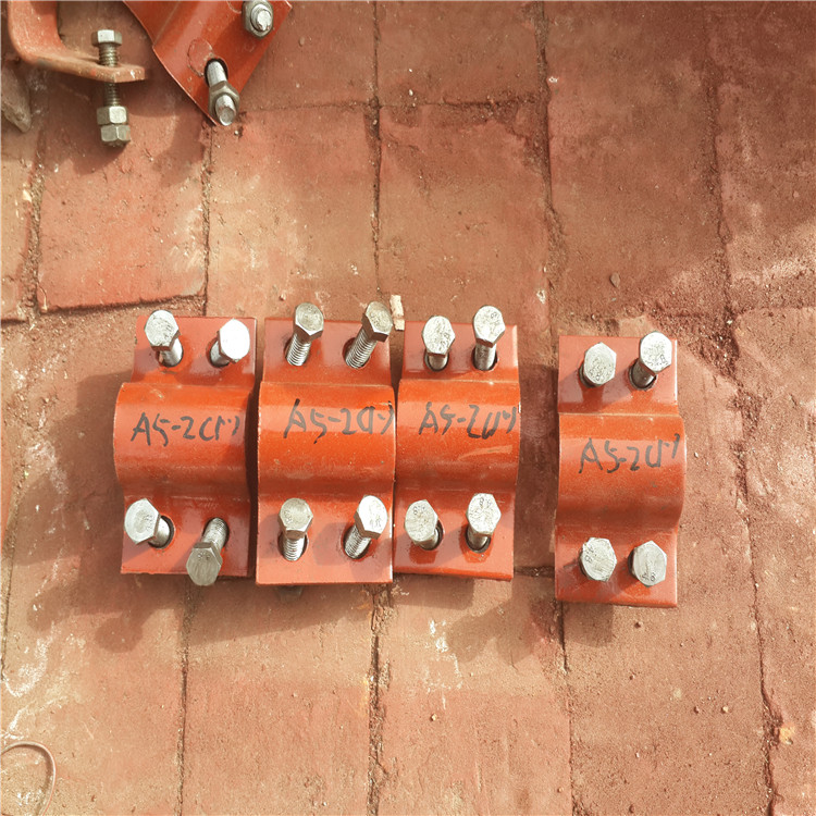 叠起装配,导轨可焊在基础上,或用螺钉固定,先装上下半个管夹身,放上需固定的管子再放上上半个管夹身,用螺钉固定,通过防松盖板防止它转动。然后安装第二个管夹,方法同上。