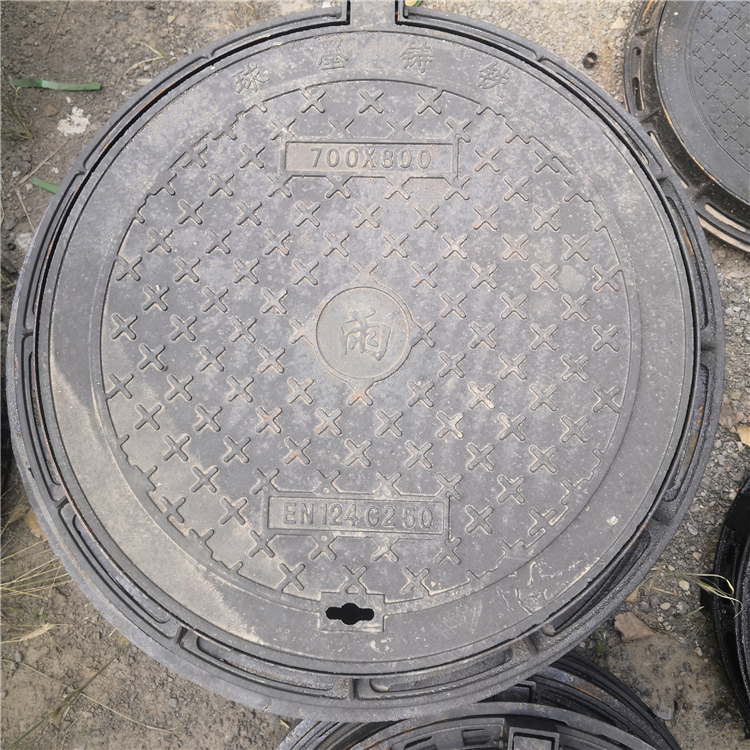 6) 放破损:这是球墨铸铁井盖的特点,重型球墨铸铁井盖可承压36T/60T,轻型可承压21T。即便荷载压力超过它的极限,球铁井盖并不像普通铸铁井盖那样破碎,而是稍有变形,对车子及行人有一定的安全保障。