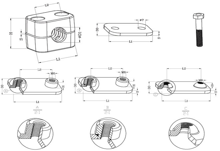 | 适用范围 | 轻型外六角导轨管夹用于液压管道固定 |
