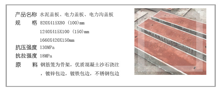 广州市诚亿水泥制品有限公司从事水泥制品行业20多年水泥电力盖板、电缆沟盖板,我们拥有丰富的电缆沟盖板制作经验,模具众多,本厂工程项目有的要求高的盖板还要包边的有:镀锌包边电缆沟盖板,镀锌包边的水泥盖板,镀锌包边电力盖板,镀锌包边水泥电力盖板等等!