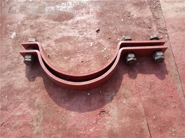 长管夹包括螺栓、弹垫、盖板螺栓孔、管夹体、管夹孔、管夹孔A、管夹体螺栓孔、导轨螺母、导轨槽、导轨、平垫、盖板,其特征在于,在螺栓上依次套入弹垫、平垫,将螺栓经过盖板螺栓孔,管夹体螺栓孔后,通过导轨螺母固定在导轨上,所述的导轨槽位于导轨螺母与导轨的连接处,其作用是防止导轨螺母在导轨上转动,所述的管夹体分上、下两部分,中间平行设置二个直径相等的管夹孔,操作时能同时夹紧二根管路,其内径面为多组凹槽型,凹槽型的管夹孔,能与较软的被夹管路完全吻合,使管路不易产生串动移位,下管夹体与导轨上导轨螺母连接处,也有一凹槽与导轨螺母吻合。 长管夹D1,三孔短管夹D2,双孔短管夹,D2三孔短管夹(≤450℃)—标号:D2.57,D2.76,D2.89,D2.108,D2.133,D2.159,D2.168等;D2A.168,D2A.194,D2A.219,D2A.245,D2A.273等。D3,焊接单板D4,焊接双板D5,管夹横担D6,焊接横担D7,管卡横担D7,管卡横担D8,立管管夹D9,立管短管夹D10,立管焊接单板D11,立管焊接双板D12,横担弹簧用焊接管座D13,横担弹簧用管夹管座D14