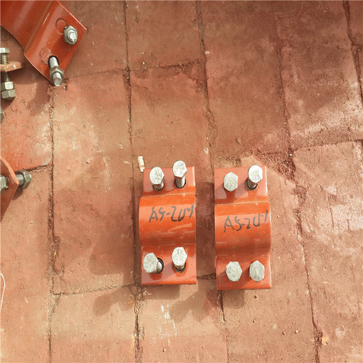 叠起装配,导轨可焊在基础上,或用螺钉固定,先装上下半个管夹身,放上需固定的管子再放上上半个管夹身,用螺钉固定,通过防松盖板防止它转动。然后安装第二个管夹,方法同上。