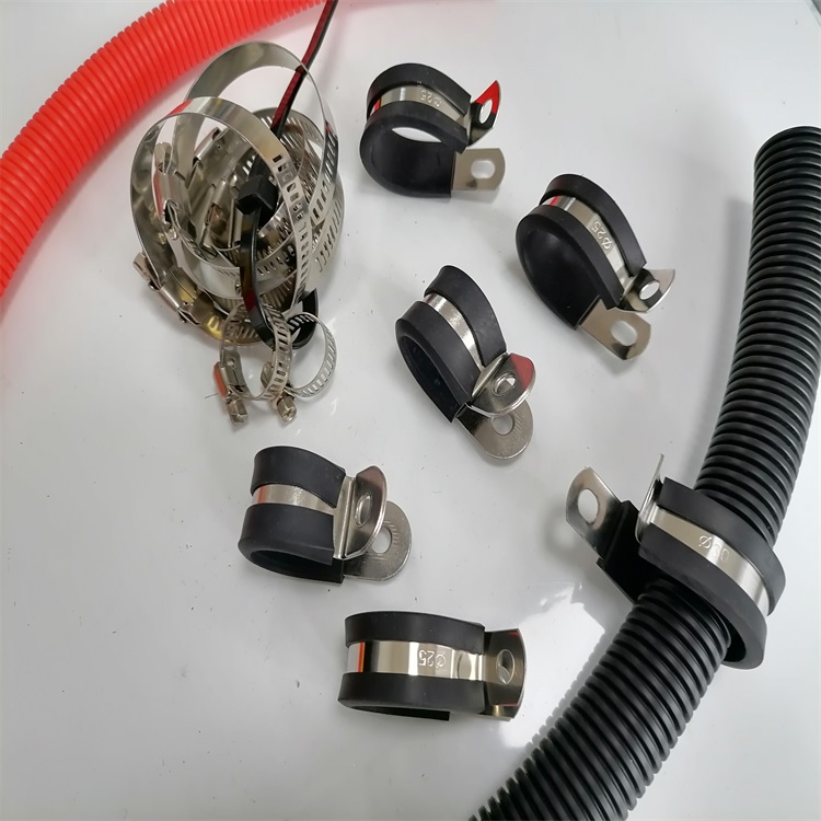 福莱通生产的电动车用金属线夹规格从4mm-110mm规格齐全,采用不锈钢和铁镀锌两种材质,外面可以采用不包胶、半包胶和全包胶形式,其他材质的线夹还可联系定做,如福莱通定制产品紫铜线夹外包阻燃热塑管,外观美观,柔韧性好,使用方便。电动车用金属及非金属穿线蛇皮管穿线简便易弯曲,防油防尘防腐耐磨抗拉抗扭,性能好。
