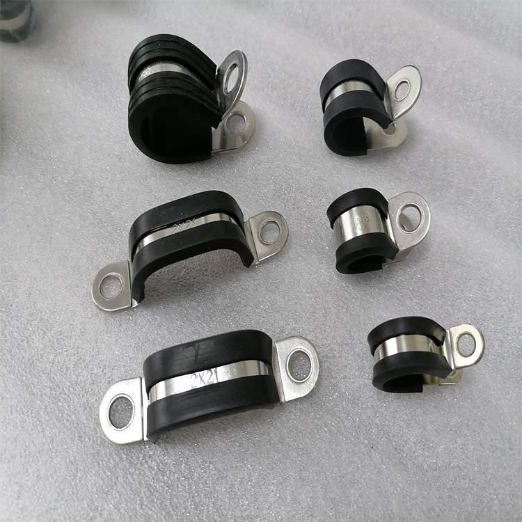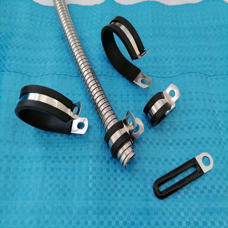 镀锌包胶管卡用途:电线电缆、管件、金属软管、波纹管等紧固用产品,外包橡胶垫,紧固不受外力磨损及绝缘。