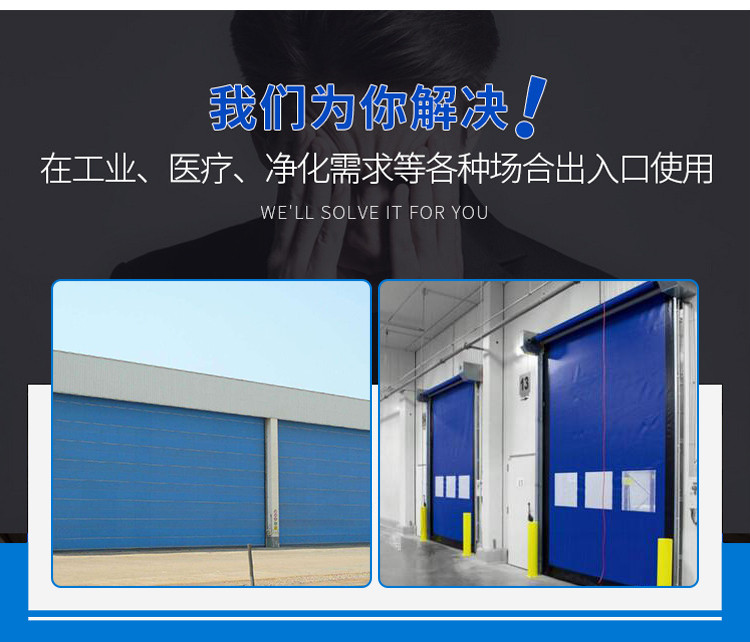 公司主要生产快速门、快速卷帘门、柔性堆积门、快速堆积门、工业门等系列产品,雄厚的技术开发实力,先进的生产设备,