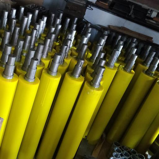 本公司加工制造:⑴聚氨酯橡胶胶辊。应用于冶金钢材加工行业聚氨酯压辊,托辊,带钢张力机胶辊,镀锌板酸洗辊,测量辊,钢板覆膜胶辊,钢板转向胶辊,活套辊,夹送辊,牵引胶辊,传动胶辊等聚氨酯胶辊;印刷机械酒精润版水辊、油墨辊、不干胶辊、上光机胶辊(UV辊),覆膜胶辊等;印铁行业聚氨酯胶辊涂覆辊;印染机械聚氨酯胶辊;建材生产加工机械胶辊;钢筋和预应力机械聚氨酯胶辊;输送机械聚氨酯胶辊、托辊和滚筒;木工行业涂胶机胶辊、输送压辊、覆膜辊、进板压辊和砂光机胶辊以及木板涂漆胶辊等;流水线滚筒包胶;玻璃机械胶辊,皮革机械胶辊,塑料机械胶辊,包装机械胶辊,纺织机械胶辊,粮食加工机械胶辊,电子设备行业聚氨酯胶辊等机械设备胶辊;钢管制造行业聚氨酯包胶托辊拖轮V型辊,螺旋焊管托辊拖轮包胶。⑵聚氨酯胶轮。皮带轮、走钢丝轮、物流仓储行业/输送包装生产线导轨轮, 承载轮,承重轮走行轮,传送轮;绞线机压线轮;压线轮,剥线机轮,带轮,扶手电梯拖轮驱动轮、电瓶叉车轮、V形轮、环保设备皮带轮,聚氨酯包胶脚轮,万向轮,矿车轮载重轮,聚氨酯滚轮、车轮聚氨酯包胶,工程机械聚氨酯工业轮及各种重、中、轻脚轮,木业四面刨胶轮,螺旋焊管拖轮,清锈机胶轮,机械轮等聚氨酯包胶胶轮。⑶机械设备行业缓冲块减震块等聚氨酯配件。⑷联轴器、工程机械履带板聚氨酯包胶,海上电缆夹板聚氨酯包胶等聚氨酯异形件。⑸抛光机球磨机研磨机等研磨设备聚氨酯耐磨内衬;流量计、光饰机、水流机等内衬包胶。⑹机械设备零部件胶辊和胶轮聚氨酯包胶等。⑺电子行业聚氨酯包胶配件。⑻长期提供新辊订做,旧辊包胶等服务(铁芯包胶轮、铝芯包胶轮)