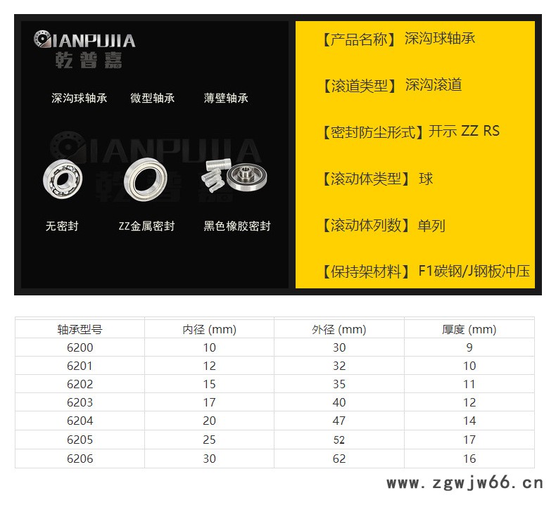 乾普嘉厂家生产深沟球62006201 6202 6203 6204 6205 6206轴承
