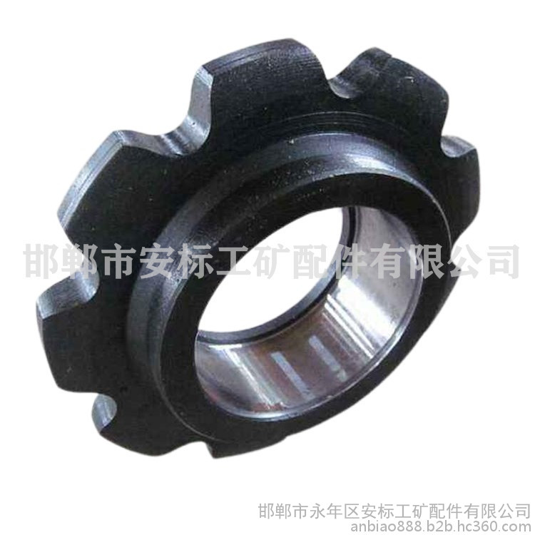 40T刮板机链轮、传动链轮由链轮、半滚筒组成。采用6条M20螺栓组成一整体。链轮采用合金钢模锻或铸造,啮合齿面经淬火处理。锻造链轮的使用寿命为铸钢链轮的2倍以上,传动链轮与减速器第四轴以花键相连接,第四轴花键前端的平键和滚筒连接。两链轮同向旋转。将扭矩传递到盲轴链轮上。使用中应经常检查6条M20螺栓是否紧固可靠。 本公司是矿业输送设备刮板机链轮的供应商,不仅刮板机链轮常用型号的矿业输送设备备有现货,而且还能根据客户要求定制矿业输送设备。