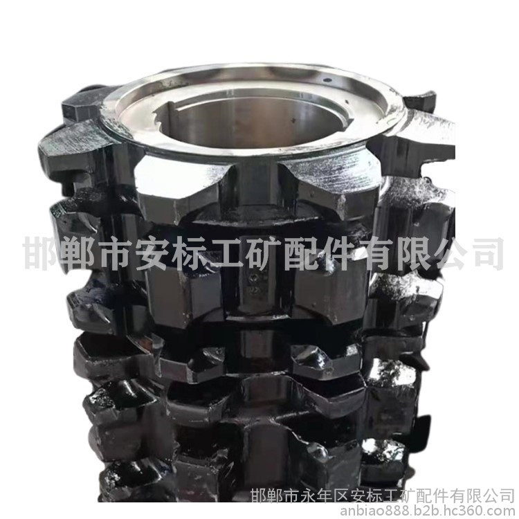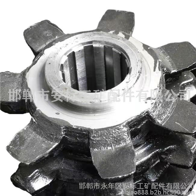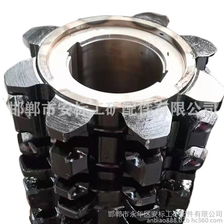 刮板机链轮轴组也叫链轮组件,是综采刮板机和转载机机头部分的重要组成部分,在煤炭开采中,链轮通过减速机带动链条带动刮板在中部槽中运行,从而达到运输煤炭等物料的目的。刮板机链轮组件根据主要大小也分种型号。强度高,耐磨,能承受脉动组合,冲击载荷,并具有一定的韧性;齿形尺寸参数设计准确,加工精度高,保证于链条进行良好的切合,目前链轮的齿数一般为6-8个齿。