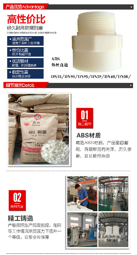 12.1.4 质轻、阻力小;ABS管质轻,为PVC的0.8倍,制品内外壁光滑,阻力小;