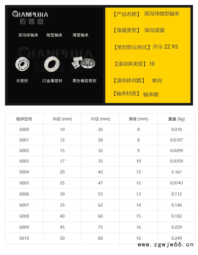 乾普嘉6001ZZ微型轴承厂家现货12*28*8深沟球0类6001RS轴承
