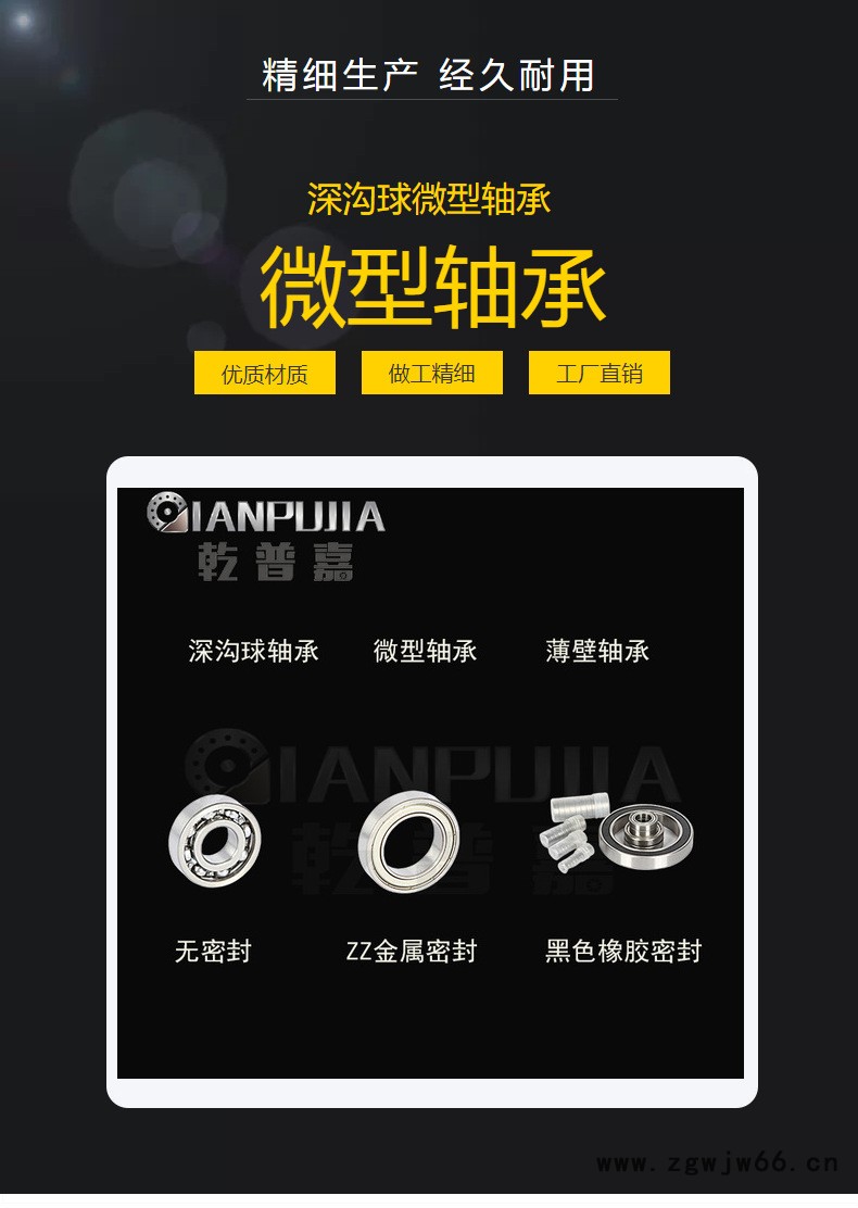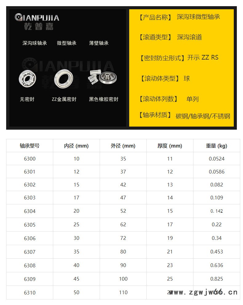 乾普嘉深沟球轴承高速低噪音6300ZZ~6310RS滚动微型轴承