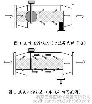 水由进水口进入过滤器,首先经过粗滤芯组件滤掉较大颗粒的杂质,然后到达细滤网,通过细滤网滤除细小颗粒的杂质后,清水由出水口排出。在过滤过程中,细滤网的内层杂质逐渐堆积,它的内外两侧**形成了一个压差。当这个压差达到预设值时,将开始自动清洗过程:排污阀打开,主管组件的水力马达室和水力缸释放压力并将水排出;水力马达室及吸污管内的压力大幅下降,由于负压作用,通过吸嘴吸取细滤网内壁的污物,由水力马达流入水力马达室,由排污阀排出,形成一个吸污过程。当水流经水力马达时,带动吸污管进行旋转,由水力缸活塞带动吸污管作轴向运动,吸污器组件通过轴向运动与旋转运动的结合将整个滤网内表面完全清洗干净。整个清洗过程将持续数十秒。排污阀在清洗结束时关闭,增加的水压会使水力缸活塞回到其初始位置,过滤器开始准备下一个冲洗周期。在清洗过程中,过滤机正常的过滤工作不间断。