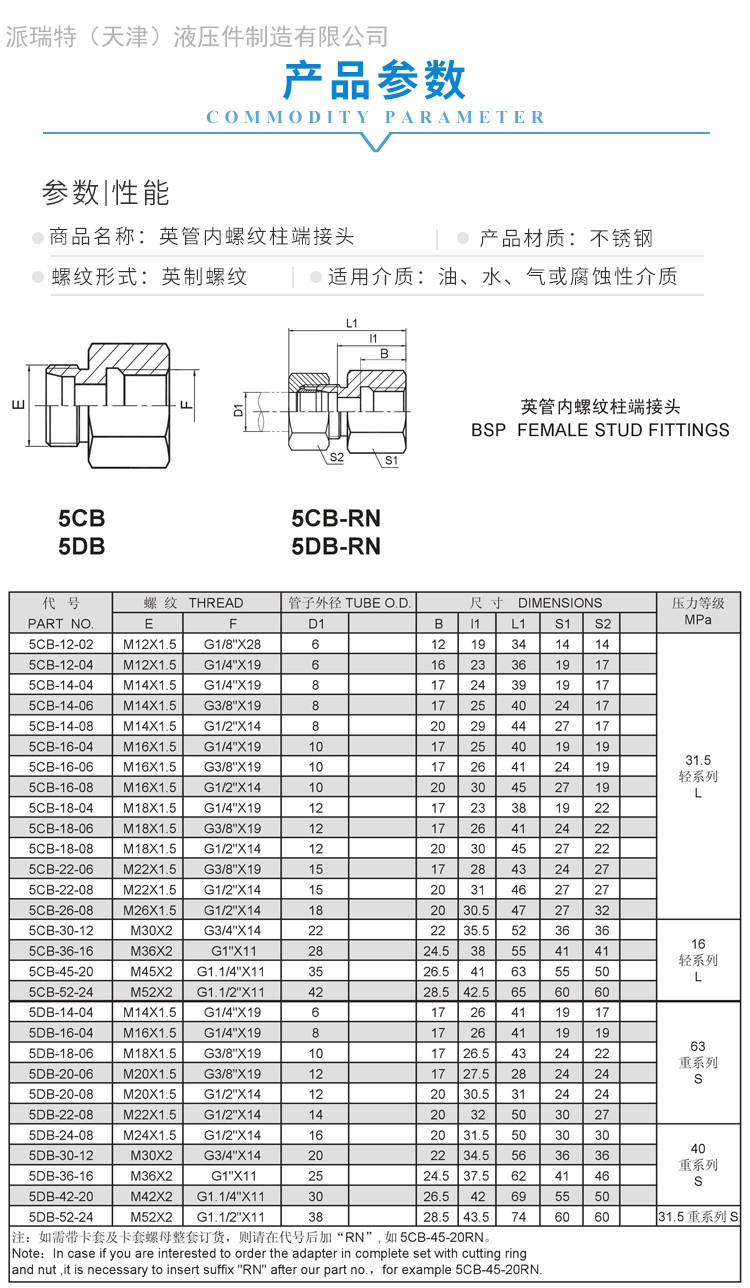 | 产品别名 | 英管内螺纹柱端接头 |