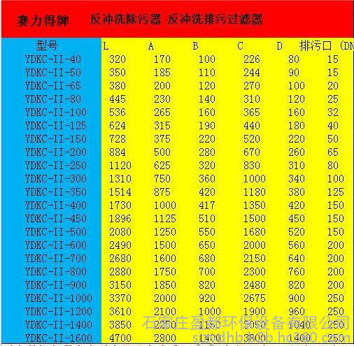 反冲洗过滤器主要设计参数: 型号: ZPG-L、ZPG-I
